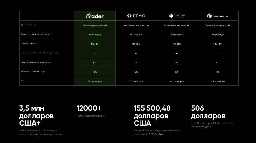iTrader — заметная проп‑площадка с агрессивной витриной (выплаты, высокий сплит, LD5/«Tier‑1»), но с юридическими расхождениями и нехваткой верифицируемых регламентов по выплатам. Мы не уверены, что это надёжный вариант для крупной суммы на старте. Если всё‑таки хотите попробовать, идите через минимальный номинал, без бонусов и с полным досье доказательств на каждый шаг. А при первых признаках затяжек — эскалируйте запрос и подключайте нашу команду. Если вам нужна помощь — напишите нам и мы вас проконсультируем.