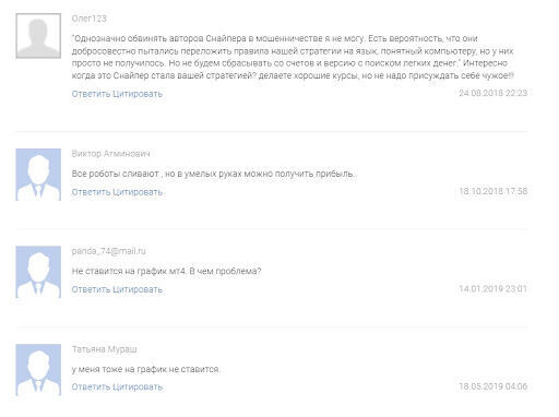 Сеть ломится от жалоб. Люди говорят: советник «Снайпер» — слив. Против него настраивают даже тесты. Он показывает себя плохо.