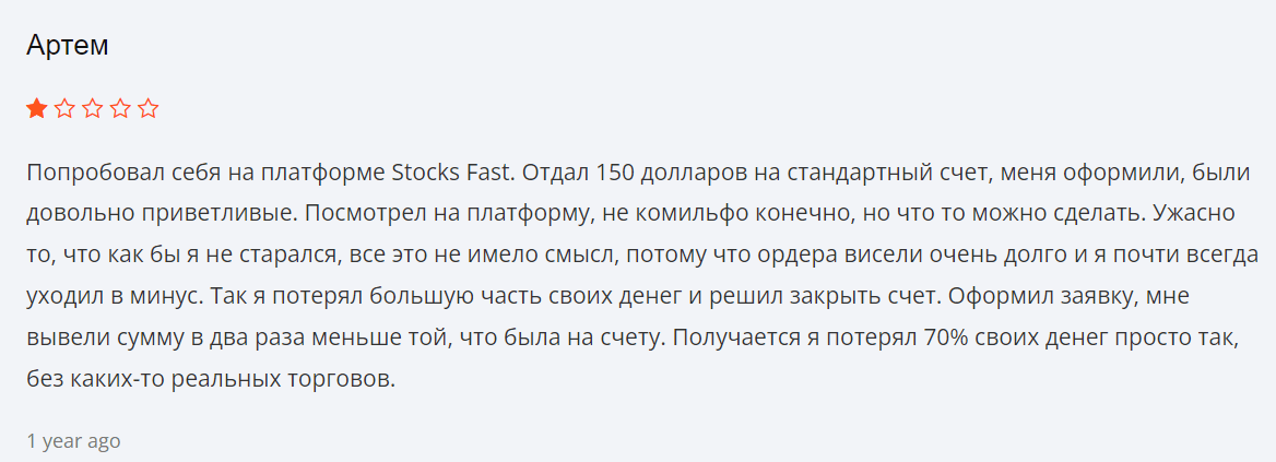 Отзывы клиентов – один из основных критериев, влияющих на расположение брокера в рейтинге лучших компаний. Увидеть все отзывы о Stocks Fast вы можете на странице профиля компании.