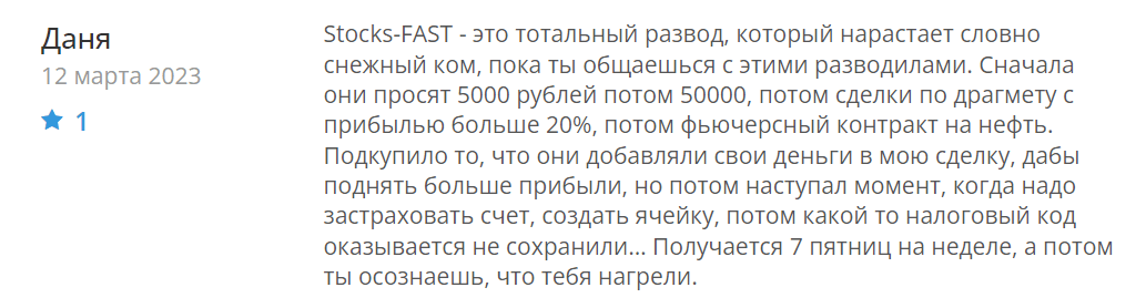 Своим впечатлением о потенциальном мошеннике Stocks Fast все читатели могут поделиться в комментариях к обзору.